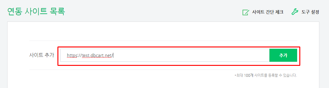 네이버에서 내사이트(랜딩)를 검색하였을때 나타나지 않는다면 네이버 웹마스터 도구를 사용하여 네이버에 등록하면 사이트에 노출될수 있습니다. 네이버 웹마스터 도구를 이용하여 내사이트(랜딩)가 노출되도록 해보겠습니다. 1. 먼저 네이버 웹마스터 도구에 접속합니다. https://webmastertool.naver.com/ 에 접속합니다. 로그인 후에 이용할수 있으므로 로그인을 해주세요. 2. 로그인을 하면 연동 사이트 목록에 사이트를 추가할수 있도록 입력상자가 나옵니다. 거기에 등록하려는 주소를 입력해주세요. (디비카트의 랜딩은 https로 시작하므로 앞에 주소도 변경해주세요.)