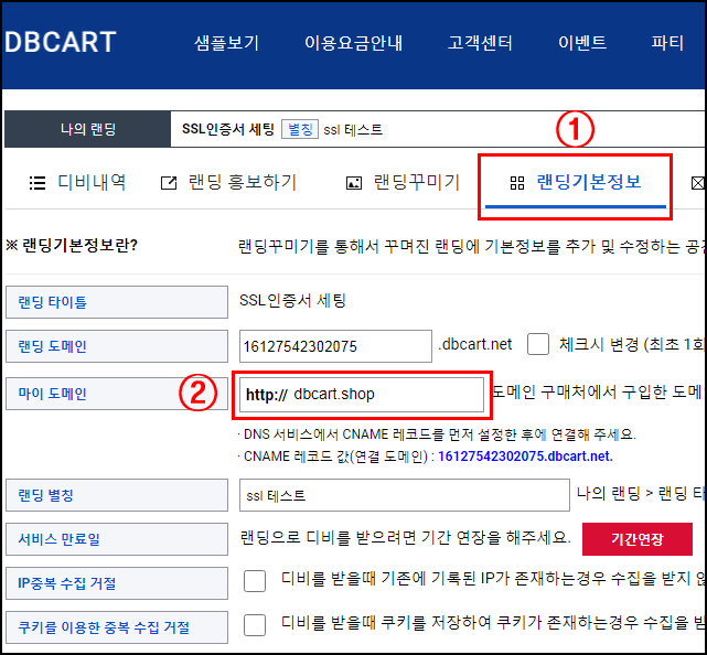 [참고]마이도메인 연결방법 : https://dbcart.net/posting_userdomain.html