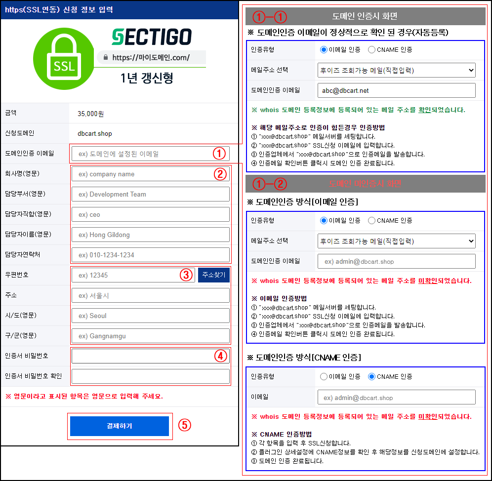 ■ 디비카트(dbcart.net) 플랫폼 SSL 보안서버 인증서 적용 방법